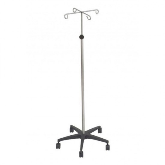 Holder to suspend the patient’s nutrient solution or medication The base of the stand is large-supplied with 4 foldable iron hooks Height adjustable 100-200 cm – Five- pointed base in plastic