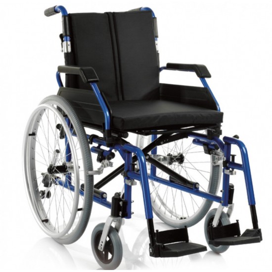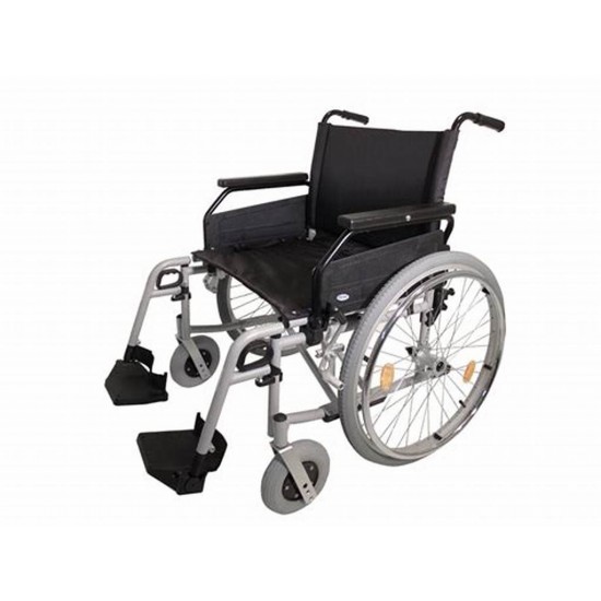 Aluminum. frame, powder-coated finish, flip back and removable armrests, height-adjustable anti-tip wheels, swing-away footrests, footrest height-adjustable, spoke rear wheel, alum. handrail, anti tipper function, 24″ alum. rear wheel, 8″ PU front wheel, seat width: 18″, 19″, 20″